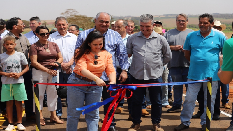 O prefeito João Roberto Camargo e o vice Ailto Faria estiveram presentes ao lado de produtores rurais, autoridades e colaboradores da Prefeitura Municipal, destacando a importância da obra para o escoamento da produção, o trânsito de caminhões e a melhoria da infraestrutura local.